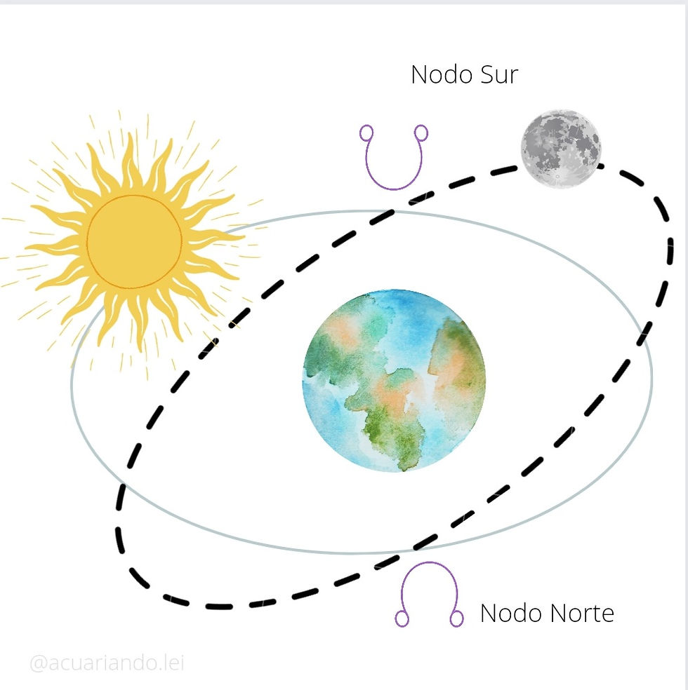 Qué son los nodos lunares? Los nodos lunares no son planetas, sino puntos matemáticos. Se generan a partir de la intersección de la órbita de la luna con la eclíptica de la tierra (recorrido que APARENTEMENTE desde nuestra perspectiva realiza el sol alrededor de nuestro planeta). Estos puntos son denominados los Nodos del Karma y , por decirlo de una forma sencilla, el nodo Sur es de dónde venimos y el nodo Norte hacia donde vamos. El nodo sur nos habla de aprendizajes ya incorporados en nuestras almas (ya sea a nivel individual o colectivo), vivencias atravesadas las cuales me dan cierto conocimiento del tema. Pueden ser situaciones que se repiten inconscientemente y que me generan una cierta situación de comodidad por ser "terreno conocido".